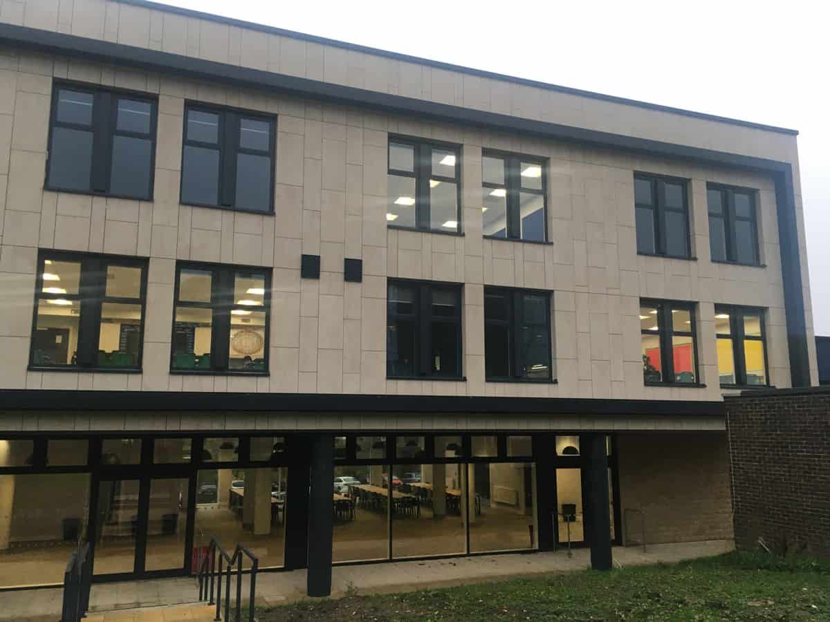 The site was particularly tight and the actual building was surrounded on three sides by live operational buildings. One of these buildings was the sports hall that was used for examinations. Work had to be scheduled around the exams. The sequencing of the work had to be very carefully planned as access to the whole site was limited to one elevation.